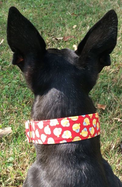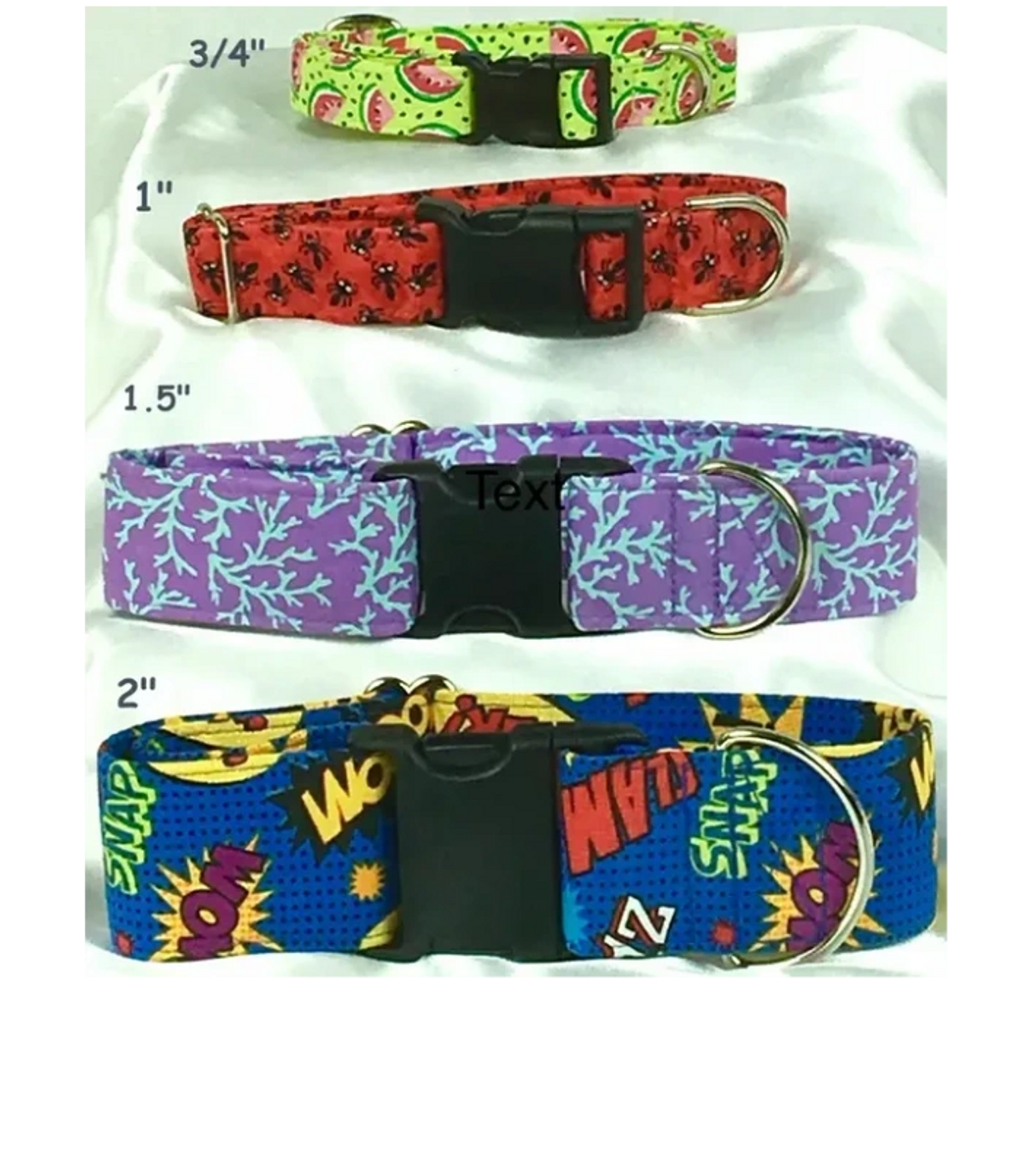 All of our collars are made from high quality and durable materials. The webbing is a thin and very strong seatbelt webbing and we use heavy welded nickel-plated, metal slides and D-rings. The plastic side-release buckles are solid and well made. Collar fabric is lined with interfacing before being wrapped and sewn around the webbing for extra durability and wear, and for a nice hefty feel to the hand.