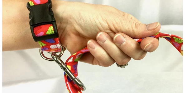 The Hold Tight! Wrist clip comes in both 3/4" and 1" widths and is available in all of the same fabrics available for our collars. They are adjustable and designed to fit wrist sizes 5"-9". Custom sizes are readily available.